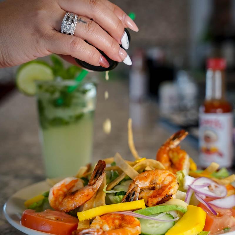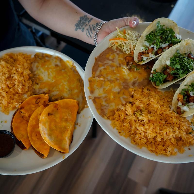 Chicken taco salad very good,veggie burrito delicious